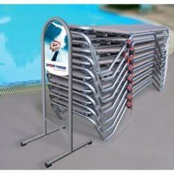 Alle Bäderliegen „Marina“ sind mit dem Münz-Pfandsystem ausgestattet. Nach dem Selbstbedienungsprinzip können sich die Badegäste eine Liege ausleihen. Einfach eine 2 €-Münze in das Pfandschloss werfen und schon haben sie eine bequeme Liege für den Aufenthalt im Schwimmbad. Ein weiterer Vorteil dieses Pfandsystems: Sie haben keine hohen Personalkosten. Die Badegäste können sich die Bäderliege ganz bequem holen und nach dem Sonnenbaden wieder wegräumen. Dies sorgt obendrein für ein ordentliches Erscheinungsbild Ihres Bades. Bei der Ausführung mit Depotstation können Sie den Ständer obendrein auf Anfrage für Ihre Werbung nutzen und die Blanko-Tafel individuell bedrucken lassen.