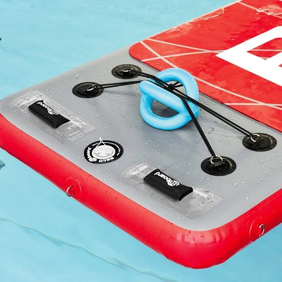 Bitte beachten Sie, die BEboards werden untereinander und am Beckenrand mit Leinen fixiert. Zudem sollte das Beco BEboard immer mindestens einen Abstand von 150 cm vom Beckenrand haben. Sind mehrere Boards im Wasser, sollten diese untereinander einen Abstand von etwa 1 m haben.