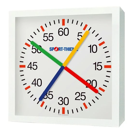 Die Trainingsuhr verfügt in der Standardversion über ein stabiles Metallgehäuse in der Farbe Weiß (RAL 9016). Das Gehäuse besitzt die Schutzart IP (EN 60 529). Gegen Aufpreis ist das Uhrengehäuse auch in der Farbe Silbergrau-Metallic (Weißaluminium RAL 9006) oder in einer anderen Farbe nach Ihrem Wunsch lieferbar. Ebenfalls gegen Aufpreis ist die Uhr wahlweise auch mit Edelstahlgehäuse V4A (1.4571 X6CrNiMoTi 17-12-2) mattgeschliffen erhältlich. Die Zeit nimmt jeder Schwimmer selbst. Das 4-farbige Zeigerkreuz zeigt die abgelaufene Zeit, eine Umdrehung entspricht 60 Sekunden. Diese Edelstahlversion ist sowohl Salzwasser- als auch chlorbeständig.