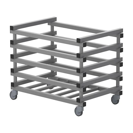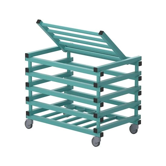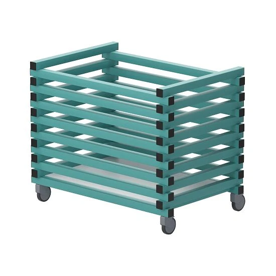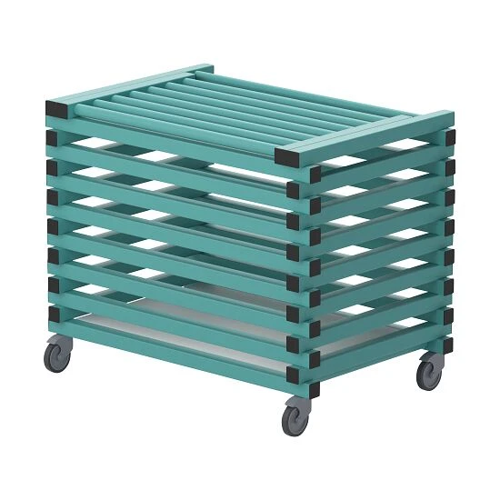 Der Transportwagen hält extremen Wetterbedingungen von –40 °C bis +80 °C stand und ist resistent gegen UV-Licht, Chlor und Wasser. Die stabile Konstruktion kommt mit Zwischenräumen. Diese sorgen für eine bessere Luftzirkulation und schnelles Trocknen. Der Wagen verfügt über 4 spurlose Räder, 2 davon mit Bremsen.