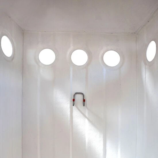 Die Sport-Thieme Umkleidekabine „Le Cabine“ im klassisch römischen Stil ist vielseitig einsetzbar. Sie ist aus hochwertigem, glasfaserverstärkten Polyesterharz gefertigt und hat eine polierte Oberfläche. Ihr Innenraum ist im hellen Weiß gehalten und sehr freundlich. Für optimalen Sichtschutz sorgt der Vorhang aus reißfestem Saran-Gewebe (100 % Polychlorid), der mittels Haken an der Sport-Thieme Umkleidekabine „Le Cabine“ befestigt wird. Mit integrierten Öffnungen an den Wänden ist eine gute Luftzirkulation garantiert. Die Bodenplatte gehört nicht zum Lieferumfang.