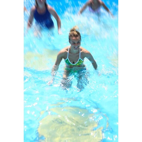 Das Unterwassertrampolin „Elastic Jump” ist ein rundes Trampolin und bietet Ihnen jetzt noch mehr Spaß und Action im Wasser. Es ist für Wassertiefen von 100–140 cm und Becken mit Fliesen- oder PVC Boden geeignet – ein Muss für effektives Aqua Fitness Training. Sein Edelstahlrahmen ist äußerst robust und hält dem härtesten Training stand. Bezogen ist das Wassertrampolin mit einem hochwertigen PVC-Sprungtuch und Polyesterschnur. Für einen sicheren Stand sorgen die 6 Standfüße mit Saugnäpfen. Besonders praktisch: Die Trampoline sind platzsparend stapelbar.