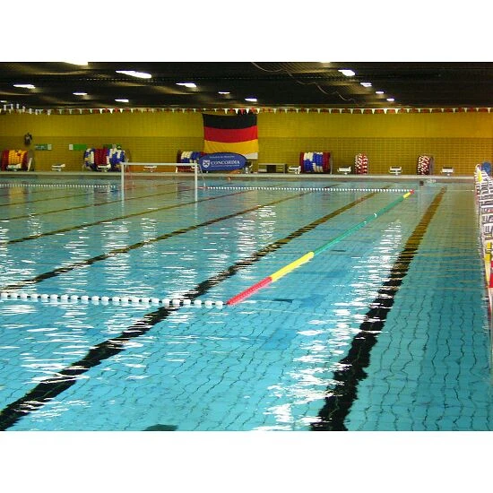 - 4 Querleinen/Seitenleinen à ca. 8,30 m (Beckenmaß 20,00 m minus Torbreite inkl. Schwimmer ca. 3,20-3,40 m)