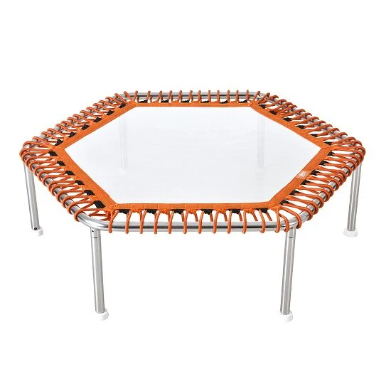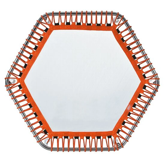 Das Unterwassertrampolin „Hexagonal“ hat einen starren Edelstahl-Rahmen und sorgt mit seinem doppelten Gummiseil für eine außergewöhnliche Federung auf der Sprungmatte. Die Saugnäpfe hinterlassen keine Spuren auf dem Boden und sind für alle Bodenbeläge geeignet. Im Vergleich zum Trampolinspringen an Land ist das Training mit dem Unterwassertrampolin gelenkschonender. Perfekt für Menschen mit Sprunggelenk- oder Knieproblemen.